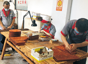 御乾堂紅木在細節上也體現著高水準,僅刮磨這一道工序就有平磨、花磨、拋光等八道工序和十五個作業標準,種種體現出生產管理規范化。
